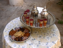 Dag 1. Flyg till Marrakech Transfer till Hotel Zalegh Kasbah & Spa i centrala Marrakech. Beroende på flygtider kan det bli chans till en första introduktion till denna sagostad, som vi kommer att bekanta oss närmare med i slutet på resan. Dag 2. Marrakech Tizi-n-Test Taroudant Vi kör söderut mot Höga Atlas och Tizi-n-Test, Testpasset. Färd i terrängbilar eller minibussar på slingrande vägar till Taroudant utmed vad som förr var en viktig karavanväg över bergen. Vi kan göra en kort avstickare till den heliga staden Moulay Brahim. I den lilla orten Asni finns en traditionell marknadsplats och kolonier av kohäger och stork. Härifrån har vi utsikt uppåt en sidodal mot Nordafrikas högsta topp Toubkal, 4.167 m.ö.h. Senare kan vi kanske besöka Tin Mal-moskén från 1156 (en av endast två moskéer i Marocko öppna för icke-muslimer). Vägen ormar sig i hårnålskurvor över passet (2.100 m.ö.h.) och vidare ner mot Sousslätten och Taroudant. Staden kallas ofta Lilla Marrakech och är omgiven av en stadsmur från 1500-talet. Vi tar in på anrika Palais Salam (hemsidan>>), ett f.d. palats med egen entré direkt genom stadsmuren. Här kan man vila ut vid poolen, njuta av växt- och fågelliv i trädgården eller ta en promenad in mot centrum för att studera folklivet. På kvällen möter vi vår lokalguide Tali Aziz, erfaren bergsguide med god kunskap om land och folk (och talar såväl engelska, som franska, arabiska och det lokala berberspråket). Dag 3. Utfärd från Taroudant. Vi kör med terrängbilar norrut upp i bergen på en slingrande väg utmed ett vattendrag. De grönskande olivodlingarna i dalen kontrasterar mot de karga, glest arganträdsbevuxna bergsluttningarna och de snöklädda högfjällen längre bort. Vi passerar många berberbyar, möter herdar med sina getter, kvinnor som tvättar i älven eller i vattenkanaler (förebilden till Madeiras berömda levador) och barn på väg till eller från skolan (i motsats till hans företrädare satsar kung Mohammed VI hårt på att utbilda folket). Eventuellt finns möjlighet att besöka en skola och/eller ett kvinnokollektiv för framställning av arganolja. Arganträdet är en specialitet för just denna del av Marocko. Vi passerar också en judisk helgedom, som är föremål för pilgrimsfärder från hela världen, framför allt i samband med den judiska påsken. Vi gör en lätt vandring bergslandskapet (23 km), som avslutas i ett berberhem, där vi serveras en gedigen marockansk lunch. Måltiden inleds med en sallad, därefter en tajine (marockansk gryta) med fårkött, couscous och lokalt odlad frukt. Avslutningsvis traditionellt mintte. Tidigt på eftermiddagen återvänder vi till Taroudant. Under ledning av lokalguiden, eller om man föredrar att gå på egen hand, kan man ströva i Taroudants marknadskvarter. Dag 4. Taroudant Aït Ben-Haddou. Vi åker över den bördiga Sousslätten där citrusodlingar växlar med glesa arganbestånd. Så småningom lämnar vi slätten och kommer vi upp på höglandet som förbinder Höga Atlas med Antiatlas i söder. Vi passerar städer som Aoulouz och Taliouine med myllrande folkliv. Arganträden ersätts efterhand av mandelträd och saffranodlingar. Saffrankrokus blommar bara under en kort tiodagarsperiod på hösten, men vi stannar till i Tinfat för att smaka på saffrante och de som vill kan givetvis passa på att handla (priset brukar ligga kring hälften av vad det kostar i Skandinavien). Färden går vidare genom ett ökenartat landskap, som dock skiftar i grönt under våren. Nästa anhalt blir i Tazenahkt, en gång i tiden bas för franska främlingslegionen, numera handelscentrum och känd framför allt för handel med mattor. Här kan man ströva i marknadskvarteren och/eller sätta sig med en kopp kaffe eller marockanskt te vid ett kafé och studera folklivet medan reseledaren och lokalguiden inhandlar ingredienserna till vår lunch, som tillagas på utvald gatugrill. Efter lunch finns chans att göra en avstickare till ett mattkollektiv, där vi kan se hur lokal mattillverkning går till. Färden fortsätter genom ökenlandskapet. Vi gör en kort eftermiddagsvandring genom en liten ökenravin (ca 1 km). Det förefaller först helt torrt, men vatten rinner under ytan och på några ställen, där berggrunden ligger ytligt, kommer vattnet fram till glädje för såväl grodor och fåglar som traktens herdar med sina betesdjur. Ibland kan man finna kolokvint, med sina klotrunda frukter, som sägs vara anfader till vattenmelonen. Vi närmar oss Ouarzazate, ökenstaden som blivit något av ett Marockos Hollywood. I omgivningarna har ökenscener från många filmer spelats in; från Morocco (1930) med Gary Cooper och Marlene Dietrich till vår egen Arn. Men ikväll stannar vi i den närbelägna lilla orten Aït Ben-Haddou, känd för att scener ur Lawrence av Arabien och Gladiator spelats in där. Vi tar in på Hotel Riad Maktoub (eller liknande) och avslutar dagen med att gå över floden och ströva runt i den gamla kasbastaden, numera världsarv, ursprungligen en karavanseraj från 1000-talet, med sina traditionella fästningslika bostäder tillika sädesmagasin. Till kvällsmål blir det förstås en marockansk måltid med harira (traditionell linssoppa) och tajine. Dag 56. Utfärder från Aït Ben-Haddou Vi åker den korta biten till Ouarzazate, en viktig handelstad där vägen från Marrakech till öknen i söder korsar vägen från kusten (Agadir) österut. Här kan vi besöka en filmstudio, där du kanske känner igen dig bland kulisser och rekvisita från tidigare filmer. Här kan vi också besöka Kasbah Taourirt, den tidigare paschan av Glaouis palats (om den inte är stängd för besökare p.g.a. filminspeling) eller den närbelägna Tifoultoute-kasban med storkbon på taket. Man kan hälsa på den ruvande storken eller ströva i den intilliggande palmoasen. Från Ouarzazate kan vi köra söderut utmed den spektakulära Vallée du Draa med sina palmo