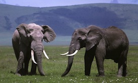 Till följd av jakten på elfenben har elefanterna minskat katastofalt i stora delar av Afrika under senare år, inklusive Tanzania. Tjuvjakten sker till stor del i industriell skala. Tarangire, Ngorongoro och Serengeti har hittills varit relativt förskonade och hyser ännu goda elefantbestånd. Passa på så länge det varar. Ditt intresse innebär också ett incitament för de styrande att intensifiera kampen mot tjuvjakten.